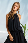 The Halter Neck Smocking Waist Dress is a stylish and flattering piece that features a halter neckline and a smocked waist. The halter neck design adds a chic and sophisticated touch to the dress, while the smocked waist creates a defined and figure-flattering silhouette. This dress is perfect for a variety of occasions, from casual daytime events to more formal gatherings. The halter neckline shows off the shoulders and creates an elegant look, while the smocked waist accentuates the waistline for a feminine and stylish appearance. Pair this dress with heels or sandals for a complete outfit that is both trendy and comfortable. It's a versatile piece that can be dressed up or down depending on the accessories and shoes you choose.