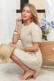 The round neck crinkle babydoll dress is a charming and feminine option for any day. Its relaxed silhouette and crinkled texture add a playful touch to your outfit. The round neckline enhances its sweet and modest look, making it perfect for casual or semi-formal occasions. Pair this dress with sandals or flats for a comfortable and stylish ensemble. Embrace the carefree and breezy style of a round neck crinkle babydoll dress!