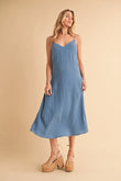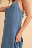 This midi cami dress is adorned with stylish side buttons for a unique and trendy touch. The sleek design offers a flattering silhouette that can be dressed up or down with ease. Elevate your wardrobe with this chic side button midi cami dress.