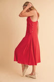 This midi cami dress is adorned with stylish side buttons for a unique and trendy touch. The sleek design offers a flattering silhouette that can be dressed up or down with ease. Elevate your wardrobe with this chic side button midi cami dress.
