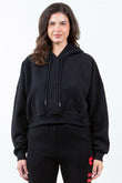 Sweat à capuche court à manches longues et cordon de serrage avec motif lettre Bazi américaine