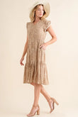 The tropical printed tiered maxi dress is a vibrant and stylish choice for a summery and tropical look. The colorful print evokes a fun and tropical vibe, perfect for beach vacations or summer parties. The tiered design adds volume and movement to the dress, creating an effortless and breezy silhouette. Pair this dress with sandals or wedges for a relaxed and chic outfit that is perfect for warm weather days. Accessorize with statement earrings and a straw hat to complement the tropical theme and complete your summer look.