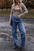 Body à manches longues et col rond à imprimé animal