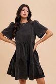 Robe en jean à manches courtes et col rond délavé minéral Annie Wear