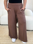 Pantalon large à taille smockée Basic Bae pleine grandeur