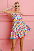 BiBi Multi Colors Plaid Sleeveless Sun Dress