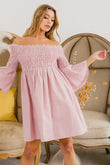 The Smocked Off-Shoulder Striped Dress is a charming and feminine piece featuring a flattering off-shoulder neckline and a sweet striped design. The smocked detailing offers a fitted and comfortable silhouette that complements the playful and summery vibe of the dress. Perfect for showcasing your shoulders and creating a breezy and stylish look for warm weather outings or casual occasions.