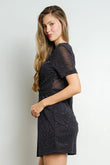 A twisted front glitter mini dress is a fun and glamorous option for a night out or a special event. This type of dress usually features a fitted silhouette with a twist or knot detail at the front, creating a stylish and flattering look. The glitter detailing adds a touch of sparkle and shimmer, making it perfect for parties or celebrations. The mini length adds a flirty and youthful vibe to the dress. You can pair it with heels and statement jewelry for a show-stopping ensemble.
