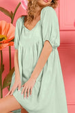 BiBi Washed Linen Tiered Midi Dress with Puff Sleeves