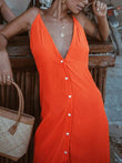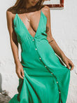 Robe camisole mi-longue boutonnée à décolleté plongeant