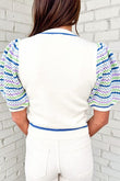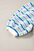 Pull à manches bouffantes rayé au crochet