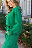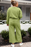 Ensemble haut à manches longues texturé et pantalon à cordon de serrage Double Take Full Size