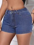 Fringe Back Denim Shorts with Pockets