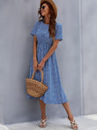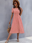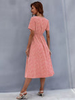 Robe mi-longue à manches courtes et col rond, imprimée miel
