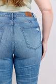 Judy Blue HW Tummy Control Vintage Wash Side Slit Slim Boot Jeans