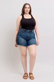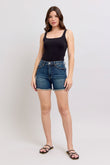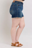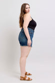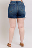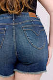 Short en jean bleu Judy avec ourlet effiloché et poches arrières à rabat