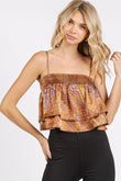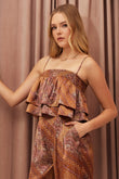 Camisole courte à volants en satin à imprimé patchwork cachemire Mittoshop