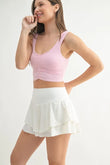 The Ruched Front Active Tank is a stylish and functional activewear top designed to provide both comfort and style during workouts. The ruched front detailing adds a fashionable and flattering touch to the tank, creating visual interest and enhancing the silhouette. Made from a breathable and moisture-wicking fabric, this tank top helps keep you dry and comfortable during exercise. The sleeveless design and relaxed fit allow for ease of movement, making it suitable for various activities such as yoga, running, or weight training. Whether you're working out at the gym or going for a jog in the park, the Ruched Front Active Tank combines performance and style to elevate your activewear wardrobe.