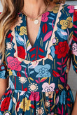 Robe midi imprimée à manches bouffantes crantées