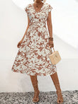 Robe midi imprimée à col en V et manches courtes