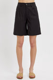 Le short taille haute plissé sur le devant offre un look raffiné et sophistiqué grâce à ses détails plissés sur le devant. Ce short taille haute offre une coupe flatteuse et une silhouette élégante. Parfait pour créer une tenue chic et soignée, il ajoute une touche d'élégance à votre garde-robe estivale.