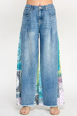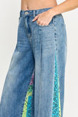SAGE + FIG Raw Hem Paisley Print Side Wide Leg Jeans