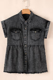 Short Sleeve Flap Pocket Button Up Raw Hem Denim Shirt