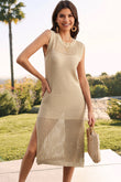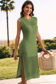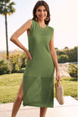 Robe pull sans manches à col rond fendu