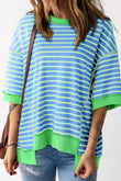 T-shirt surdimensionné à rayures et bordure contrastée, coutures apparentes, coupe haute et basse