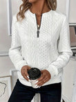 Sweat-shirt texturé à manches longues et demi-fermeture éclair