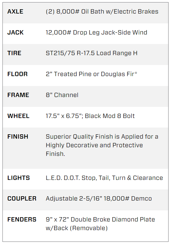 Axles: Tandem, 7,000 lb each (14,000 lb GVWR)