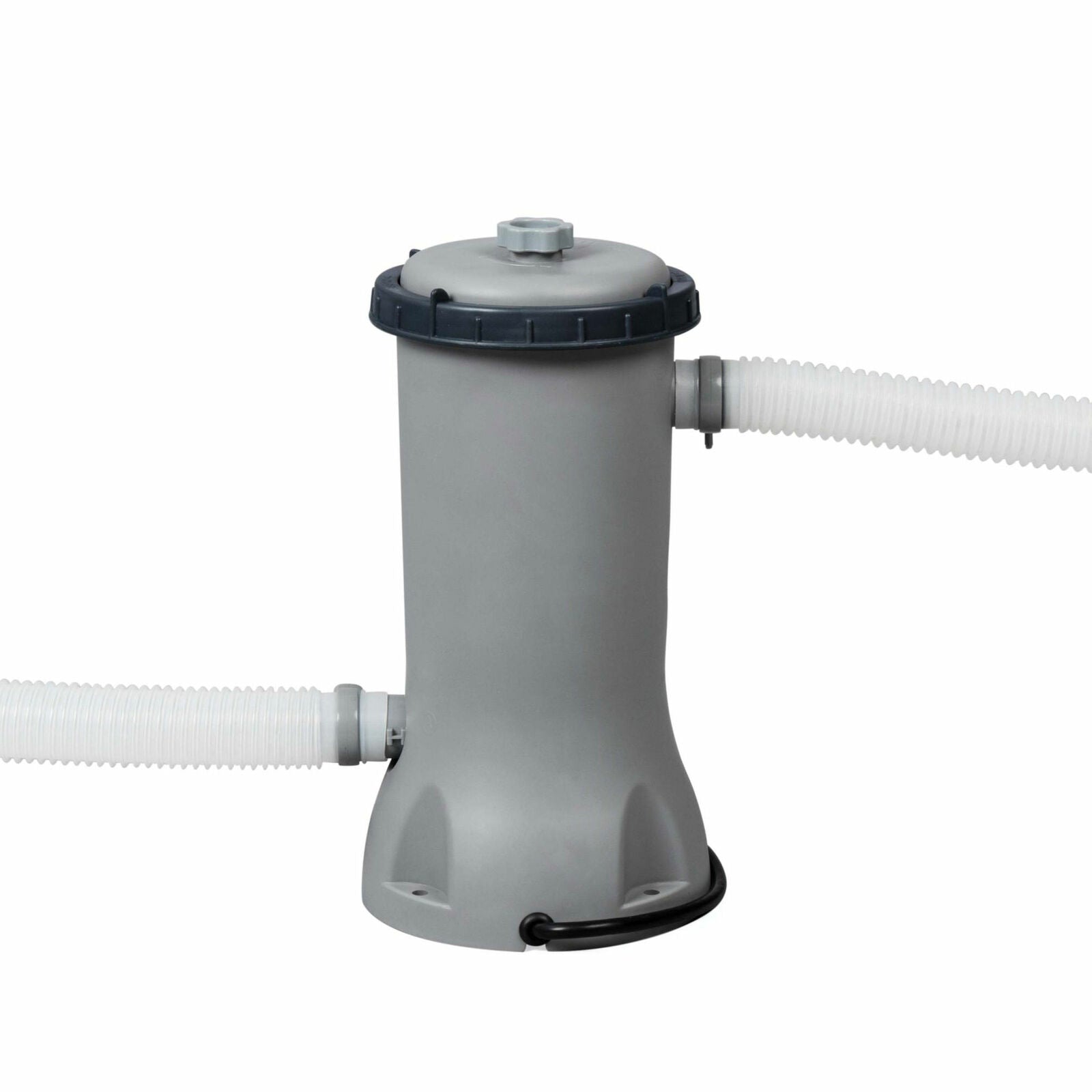 • Set includes a 530-gallon filter pump, a ladder for safe entry and exit, and a convenient, secure pool cover