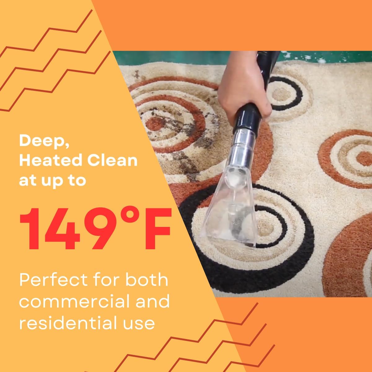 - Powerful Performance: Equipped with a robust 1.34 HP (1000 W) vacuum motor and 160 PSI pump for deep, thorough carpet and upholstery cleaning.