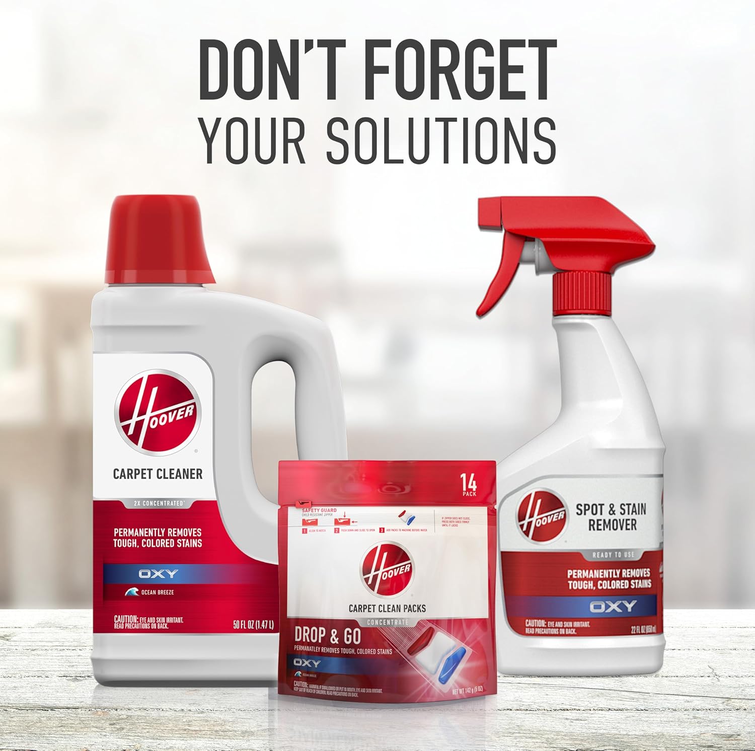 - PAIR WITH HOOVER CLEANING SOLUTION: For a bright, refreshed home, use the PowerScrub Deluxe with a Hoover carpet shampoo solution. Tackle pet messes with our Pet formula or clean everyday stains with our Everyday solutions.
