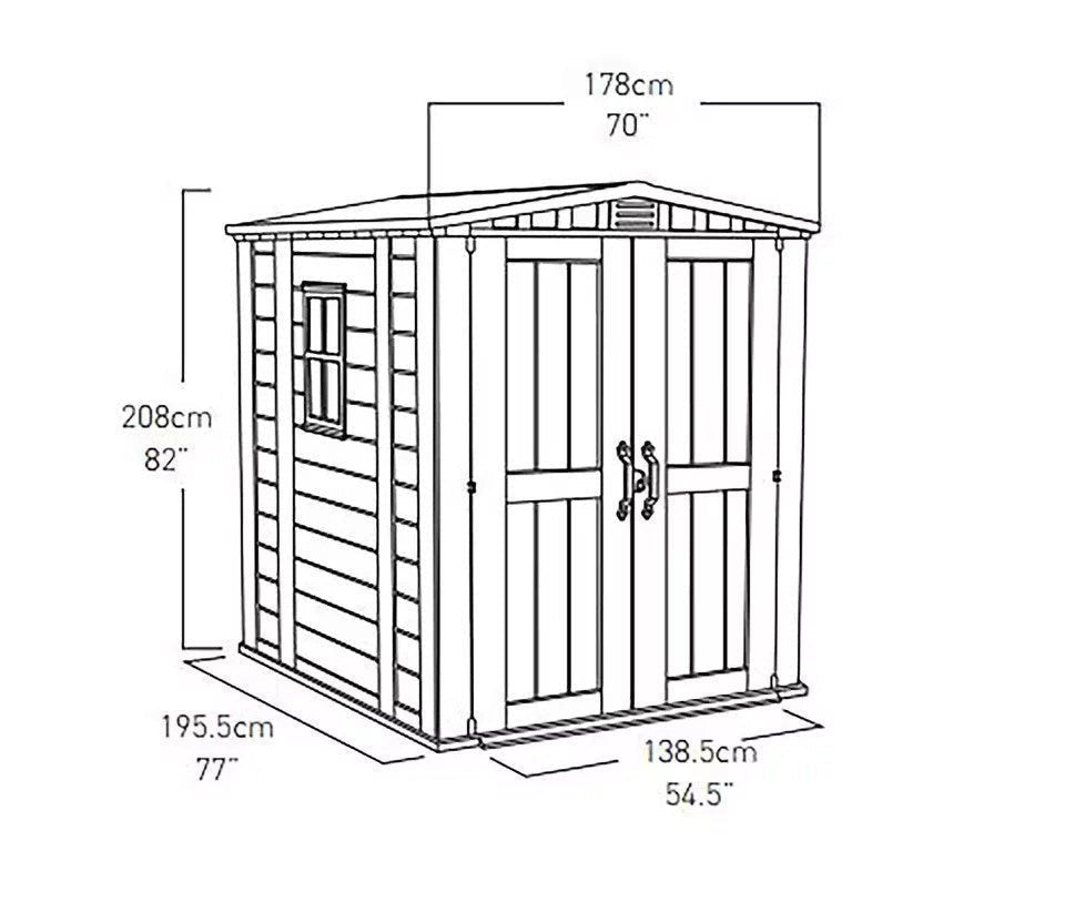 With plenty of space for internal organisation – 2 x built in shelves – a wood look design, fixed window and skylight for natural light – the Factor is everything you could possibly want in a shed!