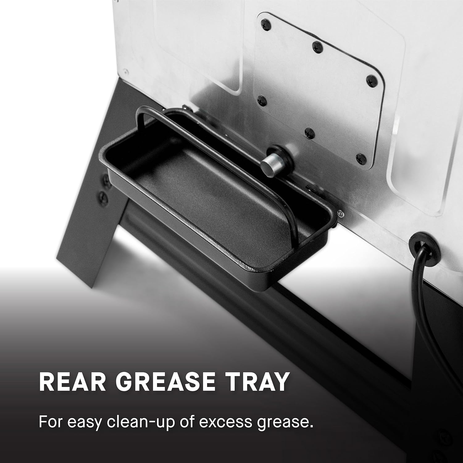 • REMOVEABLE rear grease tray for an easy cleanup process