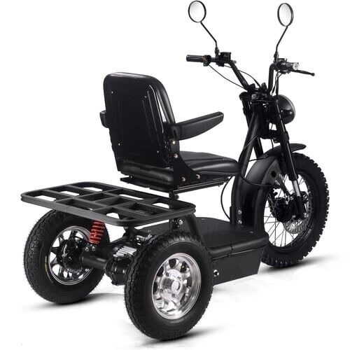 The MotoTec Electric Trike 60V 1800W combines power, stability, and style in a sleek three-wheel design. Built for adults and teens, this electric trike delivers strong acceleration, excellent handling, and comfortable riding with its wide tires and ergonomic frame. Perfect for commuting, leisure rides, or cruising, it offers a fun and eco-friendly way to get around.