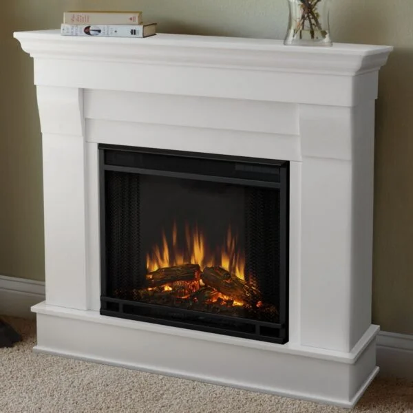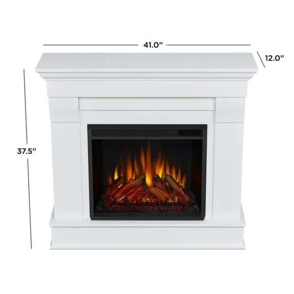 Flaunting clean lines and immaculate cuts, the Real Flame Chateau Electric Fireplace is quintessentially designed to resemble the contemporary style. Engineered out of solid wood for durability, This fireplace features a hand-painted log set and bright crackling flame that to its realistic look. With a power of 1400 watts, the Chateau Electric Fireplace produces 4700 BTU of heat, which suffices to warm an area of 100 square feet. This piece from Real Flame also has thermal overload protection and auto shut-off for unmatched safety.