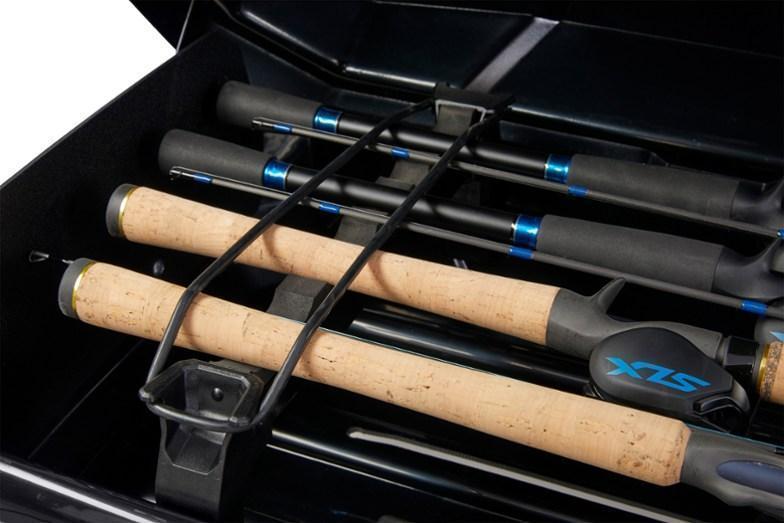 - Space below the rods is perfect for low-profile tackle boxes and other gear.