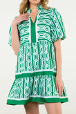 Abstract Patterned V Neck Puff Short Sleeve Mini Dress