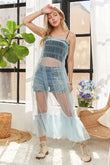 The Ruffled Mesh Cover Up Dress is a stylish and versatile piece that adds a touch of elegance to your beach or poolside look. Featuring a ruffled design and made from airy mesh fabric, this cover-up dress is lightweight and perfect for layering over your swimwear. The ruffles add a feminine and playful touch to the dress, while the mesh material provides breathability and comfort in warm weather. Whether you're lounging by the pool or strolling along the beach, this cover-up dress is a chic and practical choice that allows you to stay stylish while providing some coverage. Embrace a breezy and fashionable look with this ruffled mesh cover-up dress that effortlessly combines style and functionality.