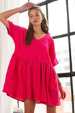 ADORA V-Neck Half Sleeve Dress with Pockets