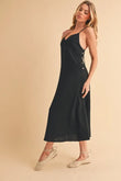 This midi cami dress is adorned with stylish side buttons for a unique and trendy touch. The sleek design offers a flattering silhouette that can be dressed up or down with ease. Elevate your wardrobe with this chic side button midi cami dress.