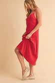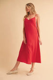 This midi cami dress is adorned with stylish side buttons for a unique and trendy touch. The sleek design offers a flattering silhouette that can be dressed up or down with ease. Elevate your wardrobe with this chic side button midi cami dress.