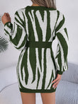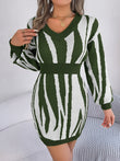 Animal Print V-Neck Long Sleeve Sweater Dress
