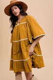 Annie Wear Tassel Contrast Trim Tie Neck Half Sleeve Tiered Dress