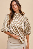 Annie Wear Tie Back Abstract Print Mock Neck Half Sleeve Blouse