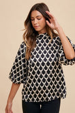Annie Wear Tie Back Abstract Print Mock Neck Half Sleeve Blouse