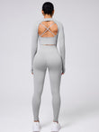 Back Crisscross Round Neck Long Sleeve Top and Leggings Active Set