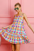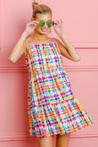 The multi-colors plaid sleeveless sundress is a cheerful and versatile piece that exudes a fun and playful vibe. Featuring a plaid pattern in various colors, this dress offers a fresh and vibrant look for sunny days. The sleeveless design is perfect for staying cool and comfortable in warm weather. You can style this dress with sandals or sneakers for a casual daytime outfit. Whether you're heading to a picnic, brunch, or a day out in the sun, this sundress is a charming and easy-to-wear choice that adds a pop of color to your summer wardrobe.